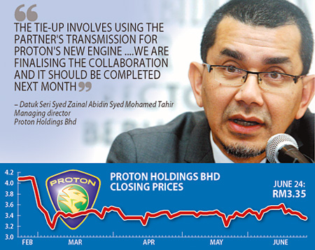 PROTON dilaporkan oleh business timesbakal memuktamadkan satu kerjasama dengan ‘pengeluar’ luar negara termasuklah menggunakan kotak gear ‘rakan’ pengeluar tersebut untuk enjin baru mereka. Menurut Syed Zainal, kerjasama itu bakal membawa masuk pelaburan sebanyak RM800 juta ke dalam negara. Beliau tidak mendedahkan nama pengeluar tersebut namun menyebut kerjasama itu bakal dimuktamadkan bulan depan.